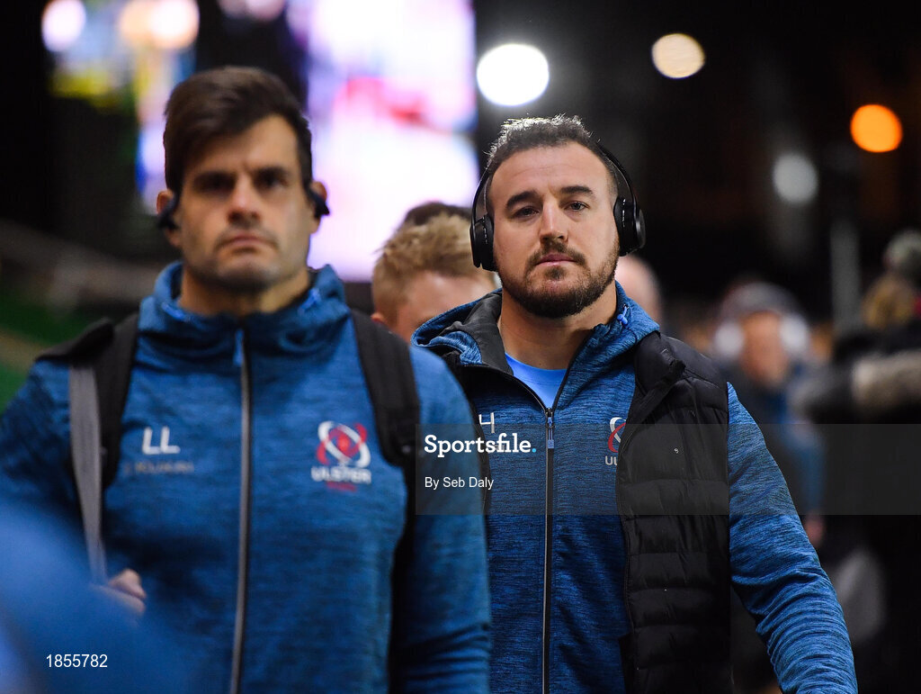 13 December 2019; Rob Herring of Ulster, right, arrives prior to the Heineken Champions Cup Pool 3 Round 4 match between Harlequins and Ulster at Twickenham Stoop in London, England. Photo by Seb Daly/Sportsfile