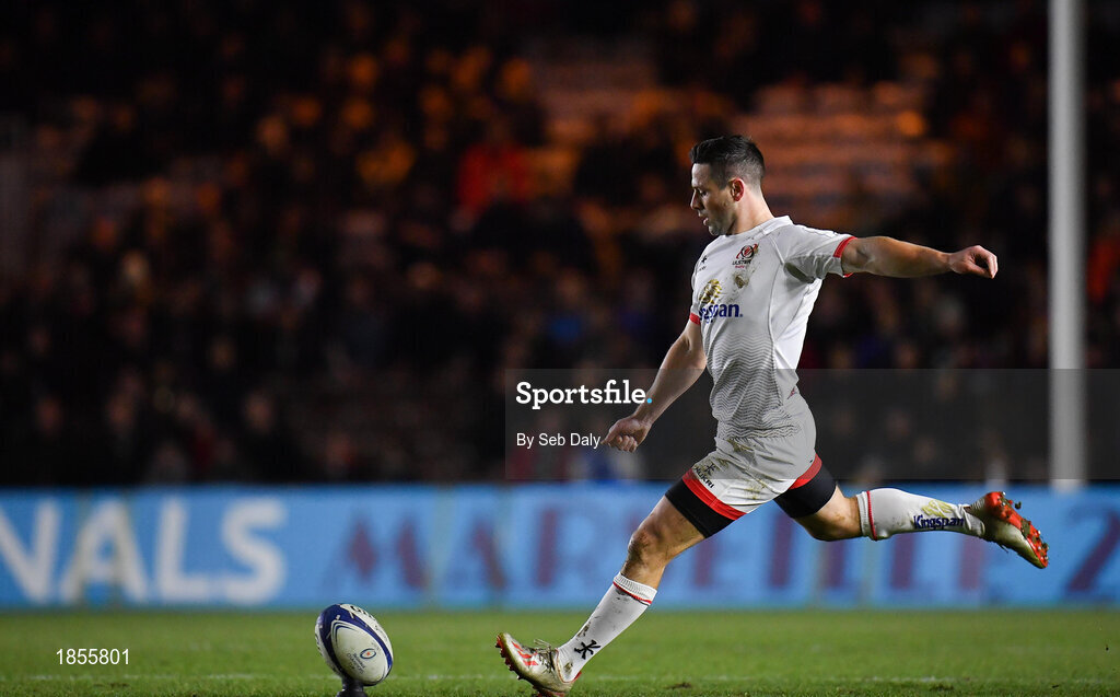 13 December 2019; John Cooney of Ulster kicks a penalty during the Heineken Champions Cup Pool 3 Round 4 match between Harlequins and Ulster at Twickenham Stoop in London, England. Photo by Seb Daly/Sportsfile