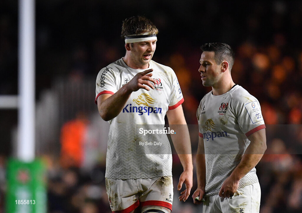 13 December 2019; Iain Henderson, left, and John Cooney of Ulster in conversation during the Heineken Champions Cup Pool 3 Round 4 match between Harlequins and Ulster at Twickenham Stoop in London, England. Photo by Seb Daly/Sportsfile