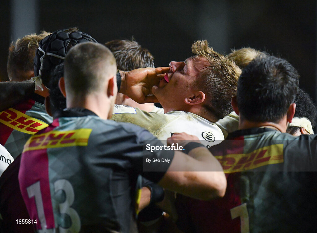 13 December 2019; Jordi Murphy of Ulster receives a hand to the face as players from both sides tussle during the Heineken Champions Cup Pool 3 Round 4 match between Harlequins and Ulster at Twickenham Stoop in London, England. Photo by Seb Daly/Sportsfile