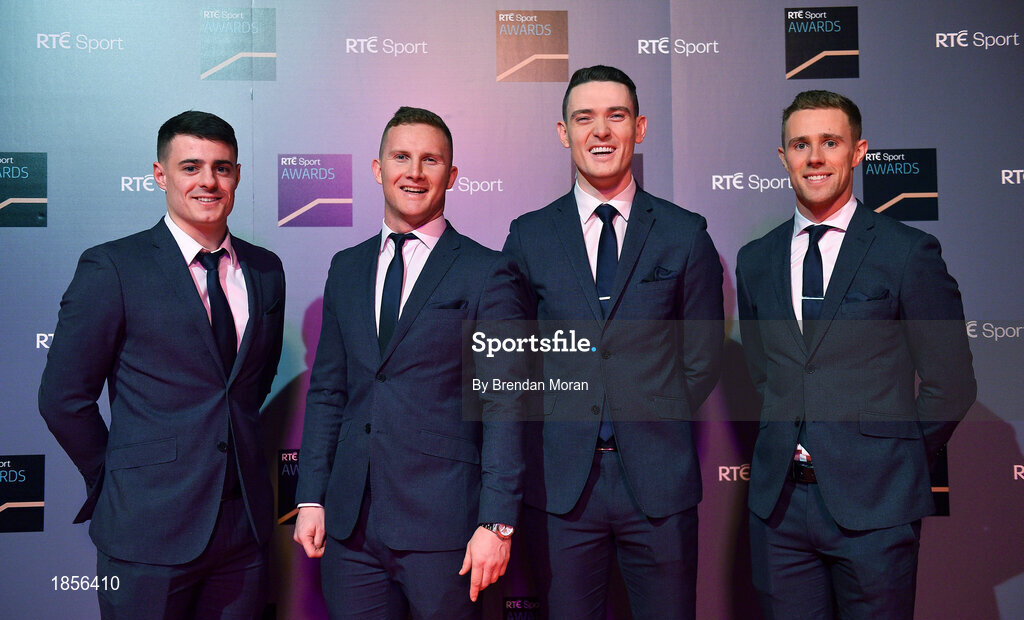 14 December 2019; In attendance during the RTÉ Sports Awards 2019 at RTÉ studios in Donnybrook, Dublin, are Members of the Dublin All-Ireland Men's Football Championship winning and five in a row winning squad, from left, Brian Howard, Ciaran Kilkenny, Brian Fenton and Paul Mannion. Photo by Brendan Moran/Sportsfile