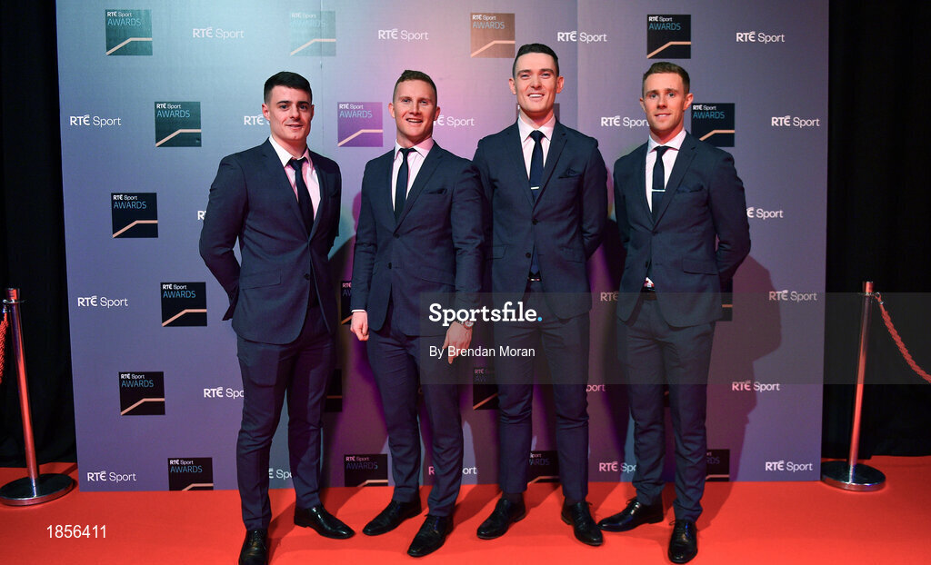 14 December 2019; In attendance during the RTÉ Sports Awards 2019 at RTÉ studios in Donnybrook, Dublin, are Members of the Dublin All-Ireland Men's Football Championship winning and five in a row winning squad, from left, Brian Howard, Ciaran Kilkenny, Brian Fenton and Paul Mannion. Photo by Brendan Moran/Sportsfile