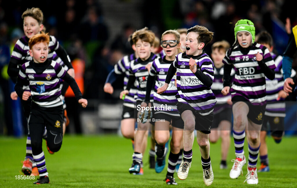14 December 2019; Action from the Bank of Ireland Half-Time Minis match between Newbridge and Terenure at the Heineken Champions Cup Pool 1 Round 4 match between Leinster and Northampton Saints at the Aviva Stadium in Dublin. Photo by Sam Barnes/Sportsfile