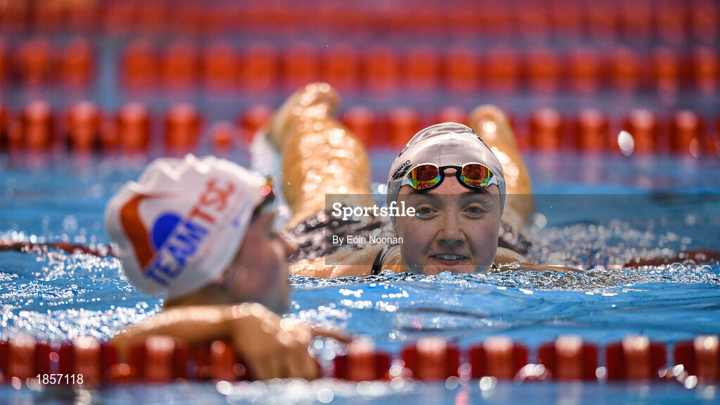 15 December 2019; Niamh Coyne of National Centre Dublin after setting a new Irish senior record during the Womens 200m Breaststroke final during day four of the Irish Short Course Championships at the National Aquatic Centre in Abbotstown, Dublin. Photo by Eóin Noonan/Sportsfile