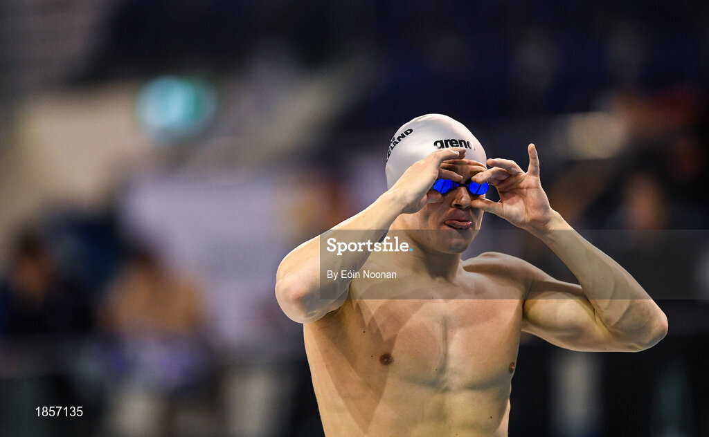 15 December 2019; Robert Powell of National Centre Dublin ahead of competing in the Mens 200m Freestyle final during day four of the Irish Short Course Championships at the National Aquatic Centre in Abbotstown, Dublin. Photo by Eóin Noonan/Sportsfile