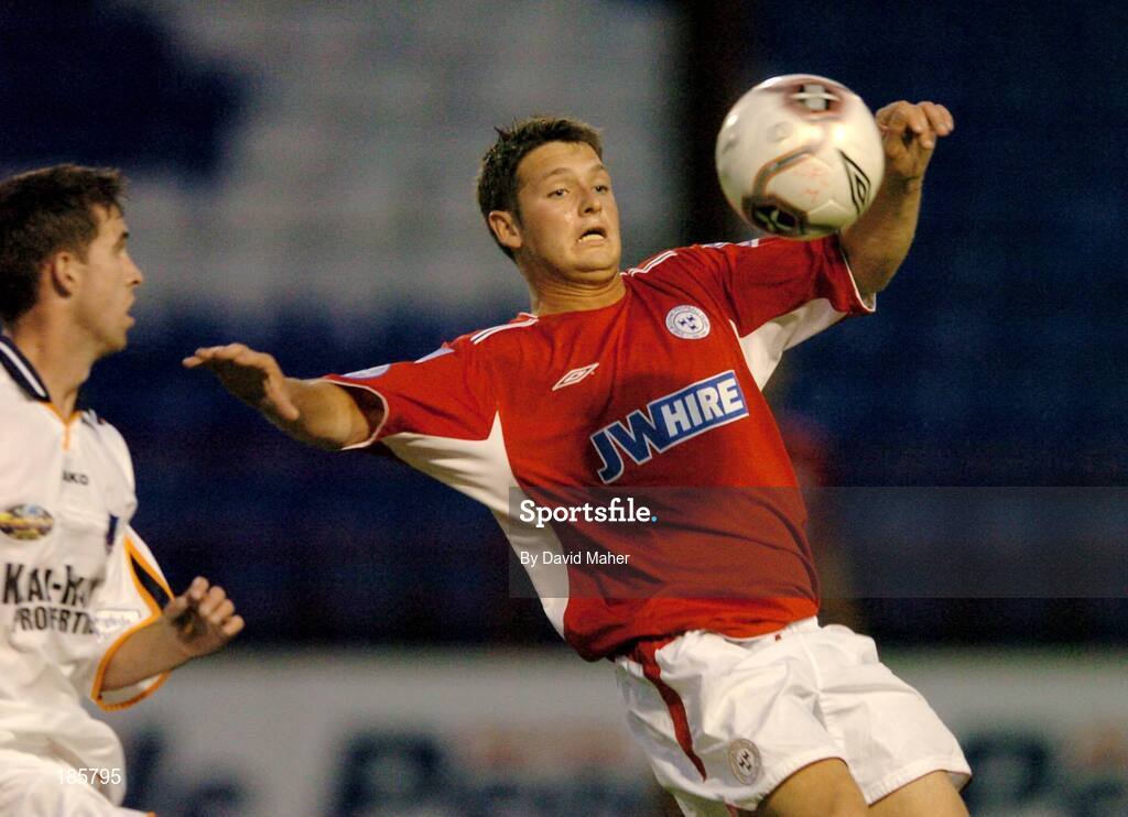 8 August 2005; Wesley Hoolahan, Shelbourne, in action against Stephen Bradley, Drogheda United. eircom League, Premier Division, Shelbourne v Drogheda United, Tolka Park, Dublin. Picture credit; David Maher / SPORTSFILE