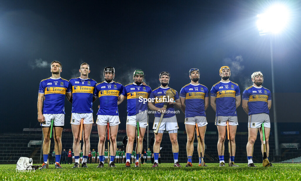 20 December 2019; Tipperary players stand for Amhrán na bhFiann before the Co-op Superstores Munster Hurling League 2020 Group A match between Limerick and Tipperary at LIT Gaelic Grounds in Limerick. Photo by Piaras Ó Mídheach/Sportsfile