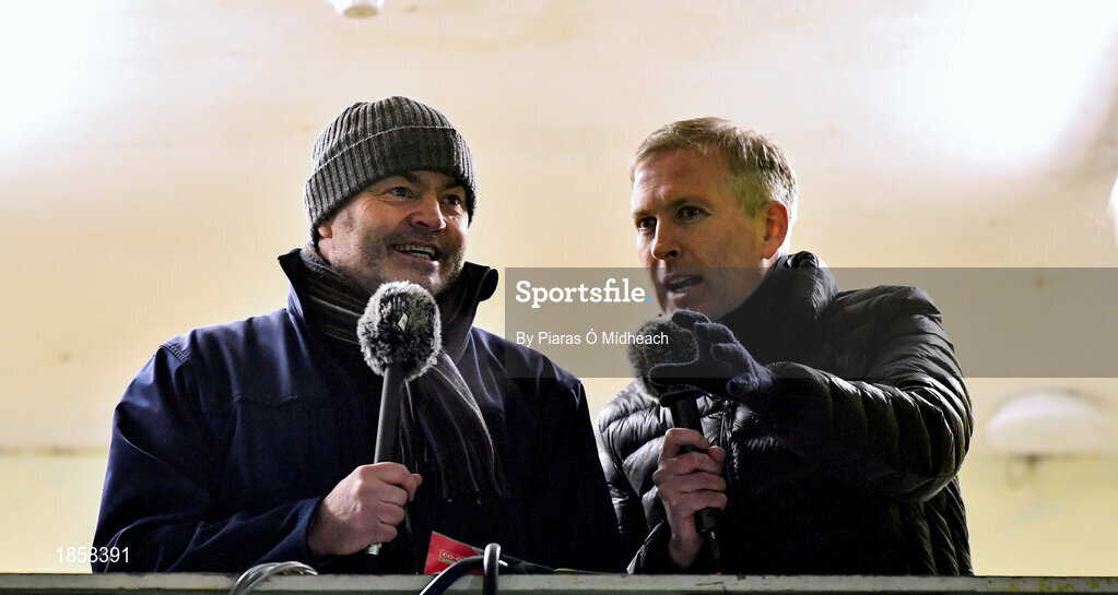 20 December 2019; Commentators Anthony Daly, left, and Colm O'Connor during an Irish Examiner broadcast at the Co-op Superstores Munster Hurling League 2020 Group A match between Limerick and Tipperary at LIT Gaelic Grounds in Limerick. Photo by Piaras Ó Mídheach/Sportsfile