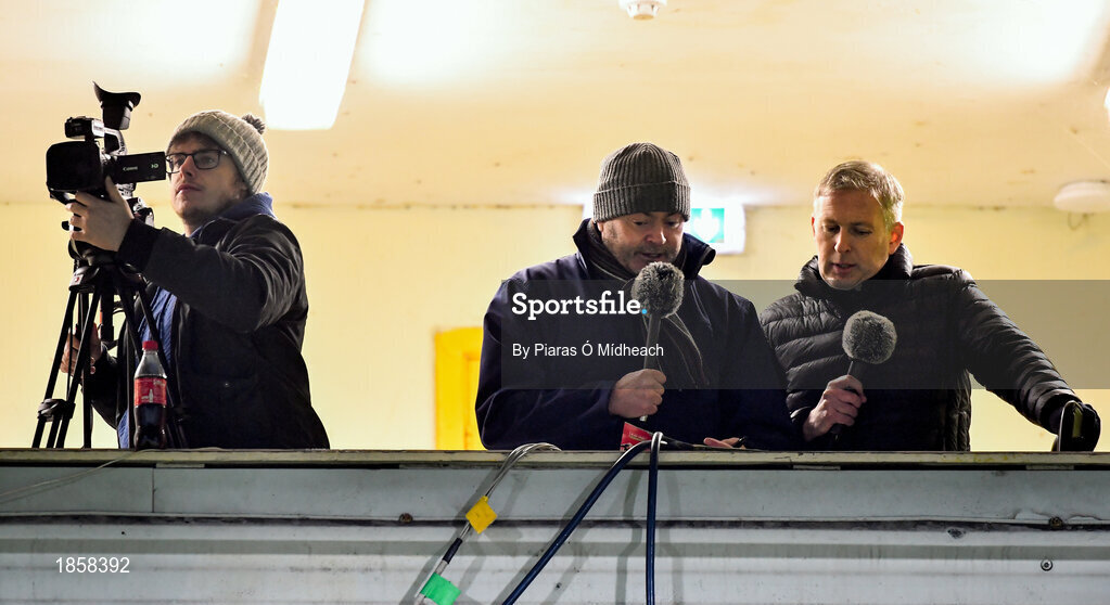 20 December 2019; Commentators Anthony Daly, left, and Colm O'Connor during an Irish Examiner broadcast at the Co-op Superstores Munster Hurling League 2020 Group A match between Limerick and Tipperary at LIT Gaelic Grounds in Limerick. Photo by Piaras Ó Mídheach/Sportsfile