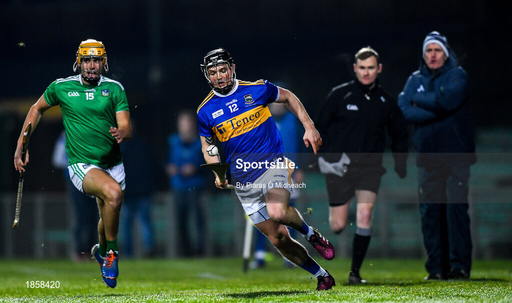 20 December 2019; Willie Connors of Tipperary gets past Darren O'Connell of Limerick during the Co-op Superstores Munster Hurling League 2020 Group A match between Limerick and Tipperary at LIT Gaelic Grounds in Limerick. Photo by Piaras Ó Mídheach/Sportsfile