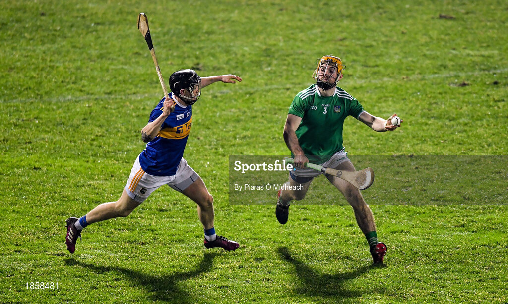 20 December 2019; Richie English of Limerick in action against Willie Connors of Tipperary during the Co-op Superstores Munster Hurling League 2020 Group A match between Limerick and Tipperary at LIT Gaelic Grounds in Limerick. Photo by Piaras Ó Mídheach/Sportsfile