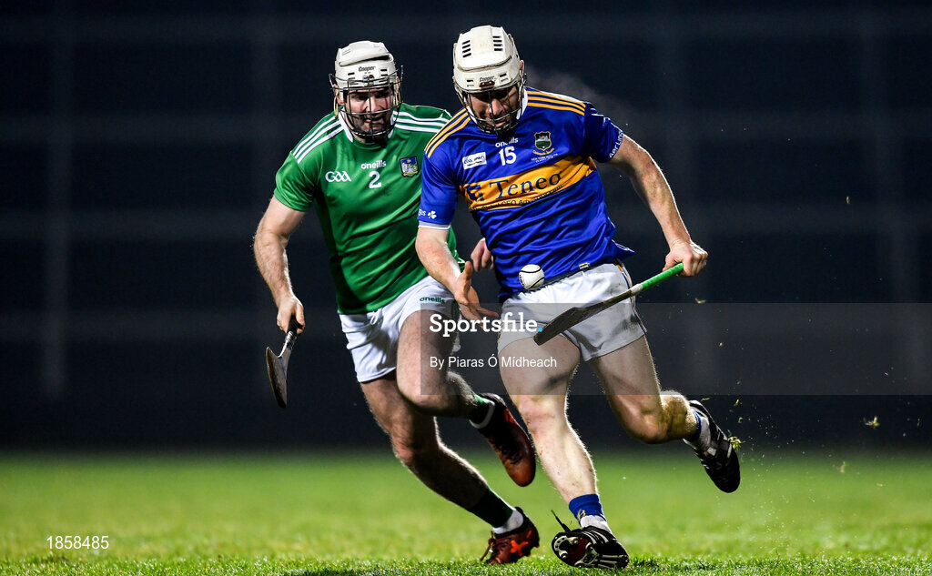 20 December 2019; Paul Flynn of Tipperary in action against Tom Condon of Limerick during the Co-op Superstores Munster Hurling League 2020 Group A match between Limerick and Tipperary at LIT Gaelic Grounds in Limerick. Photo by Piaras Ó Mídheach/Sportsfile