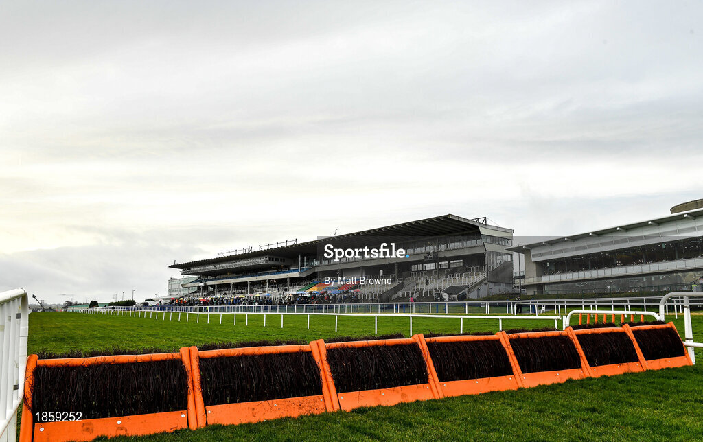 26 December 2019; A general view of the last hurdle fence at Day One of the Leopardstown Christmas Festival 2019 at Leopardstown Racecour Photo by Matt Browne/Sportsfile