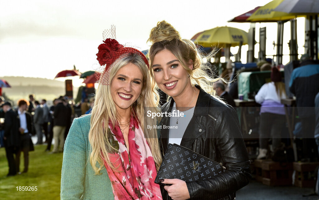 26 December 2019; Racegoers, Lauren Tinkler, left, with Laura Quigley from Straffan, Kildare during Day One of the Leopardstown Christmas Festival 2019 at Leopardstown Racecourse in Dublin. Photo by Matt Browne/Sportsfile