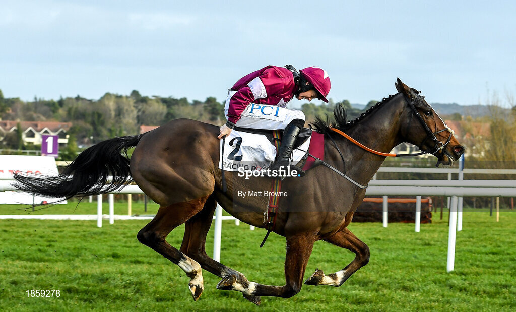 26 December 2019; Notebook, with Rachael Blackmore up, on their way to winning the Racing Post Novice Steeplechase during Day One of the Leopardstown Christmas Festival 2019 at Leopardstown Racecourse in Dublin. Photo by Matt Browne/Sportsfile