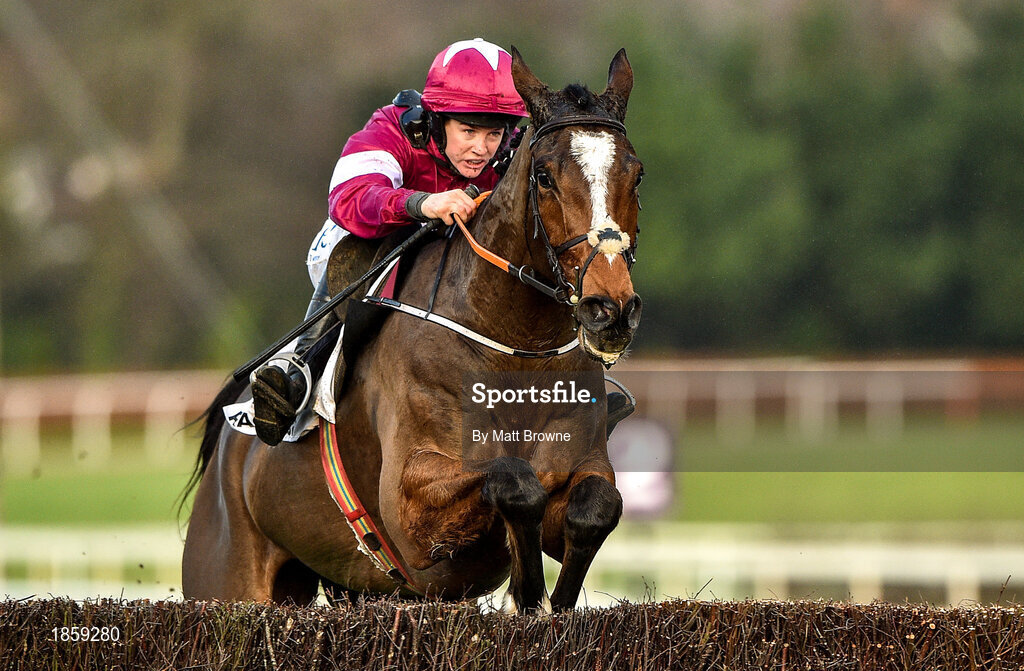 26 December 2019; Notebook, with Rachael Blackmore up, jump the last on their way to winning the Racing Post Novice Steeplechase during Day One of the Leopardstown Christmas Festival 2019 at Leopardstown Racecourse in Dublin. Photo by Matt Browne/Sportsfile