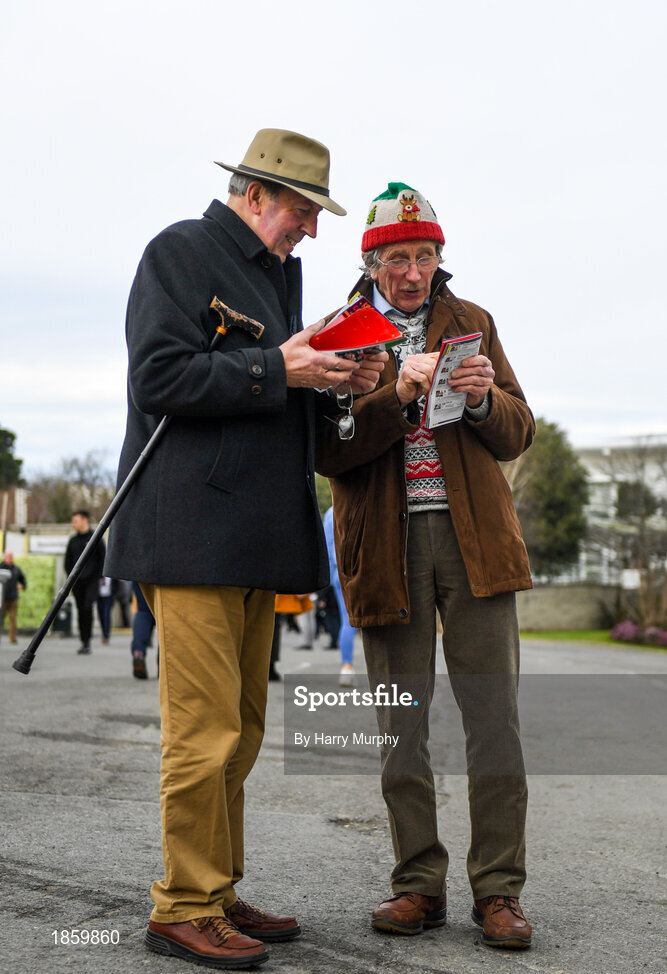 29 December 2019; Racegoers study the form prior to racing on Day Four of the Leopardstown Christmas Festival 2019 at Leopardstown Racecourse in Dublin. Photo by Harry Murphy/Sportsfile
