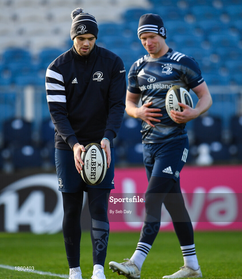 3 January 2020; Harry Byrne, left, and Ciarán Frawley during a Leinster Rugby captain's run at the RDS Arena in Dublin. Photo by Seb Daly/Sportsfile