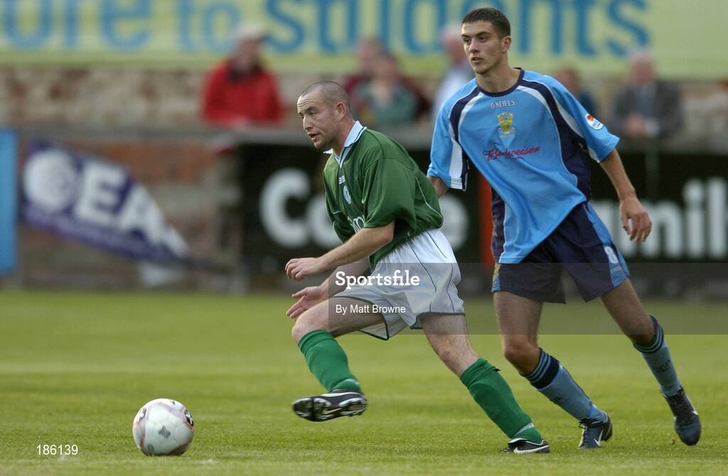 5 August 2005; Martin Laughlan, Finn Harps, in action against Gary Dicker, UCD. eircom League, Premier Division, UCD v Finn Harps, Belfield Park, UCD, Dublin. Picture credit; Matt Browne / SPORTSFILE