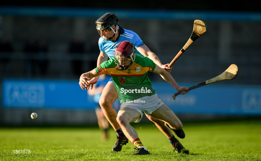 5 January 2020; Alan Corcoran of Carlow in action against Donal Burke of Dublin during the 2020 Walsh Cup Round 3 match between Dublin and Carlow at Parnell Park in Dublin. Photo by Sam Barnes/Sportsfile