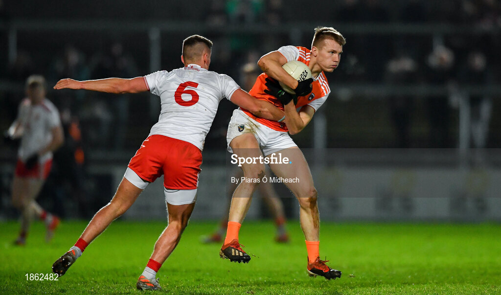 8 January 2020; Rian O'Neill of Armagh in action against Michael McKernan of Tyrone during the Bank of Ireland Dr McKenna Cup Round 3 match between Armagh and Tyrone at Athletic Grounds in Armagh. Photo by Piaras Ó Mídheach/Sportsfile