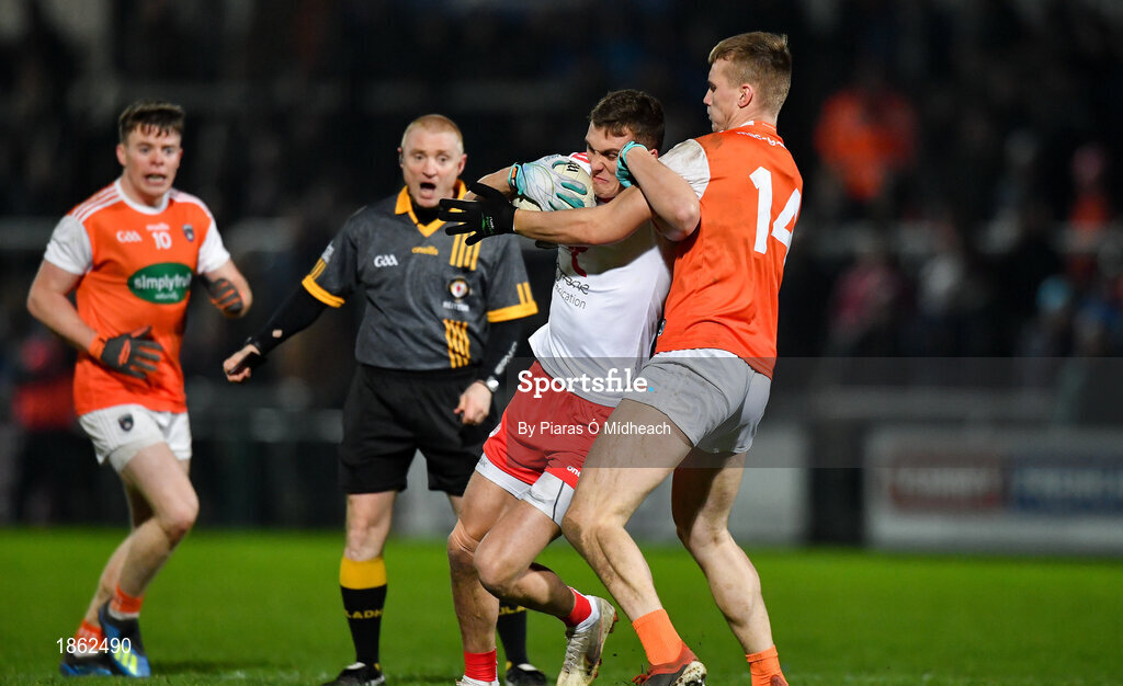 8 January 2020; Conn Kilpatrick of Tyrone in action against Rian O'Neill of Armagh during the Bank of Ireland Dr McKenna Cup Round 3 match between Armagh and Tyrone at Athletic Grounds in Armagh. Photo by Piaras Ó Mídheach/Sportsfile