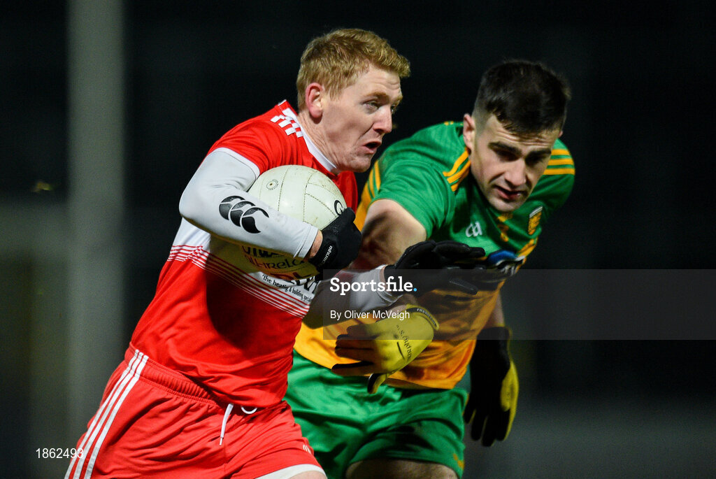 8 January 2020; Christopher Bradley of Derry in action against Caolan McGonagle of Donegal during the Bank of Ireland Dr McKenna Cup Round 3 match between Derry and Donegal at Celtic Park in Derry. Photo by Oliver McVeigh/Sportsfile