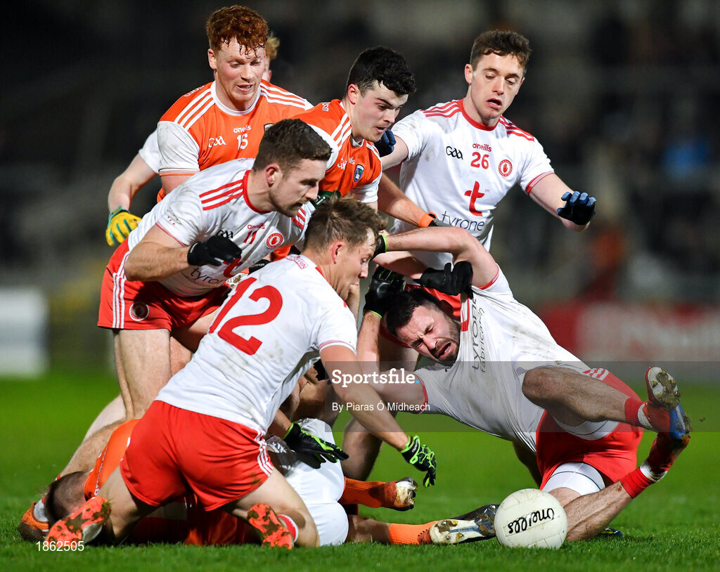 8 January 2020; Tyrone players, from left, Niall Sludden, Kieran McGeary, Liam Rafferty, and Kyle Coney in action against Armagh players Jason Duffy, 15, and Conor O'Neill, centre, during the Bank of Ireland Dr McKenna Cup Round 3 match between Armagh and Tyrone at Athletic Grounds in Armagh. Photo by Piaras Ó Mídheach/Sportsfile