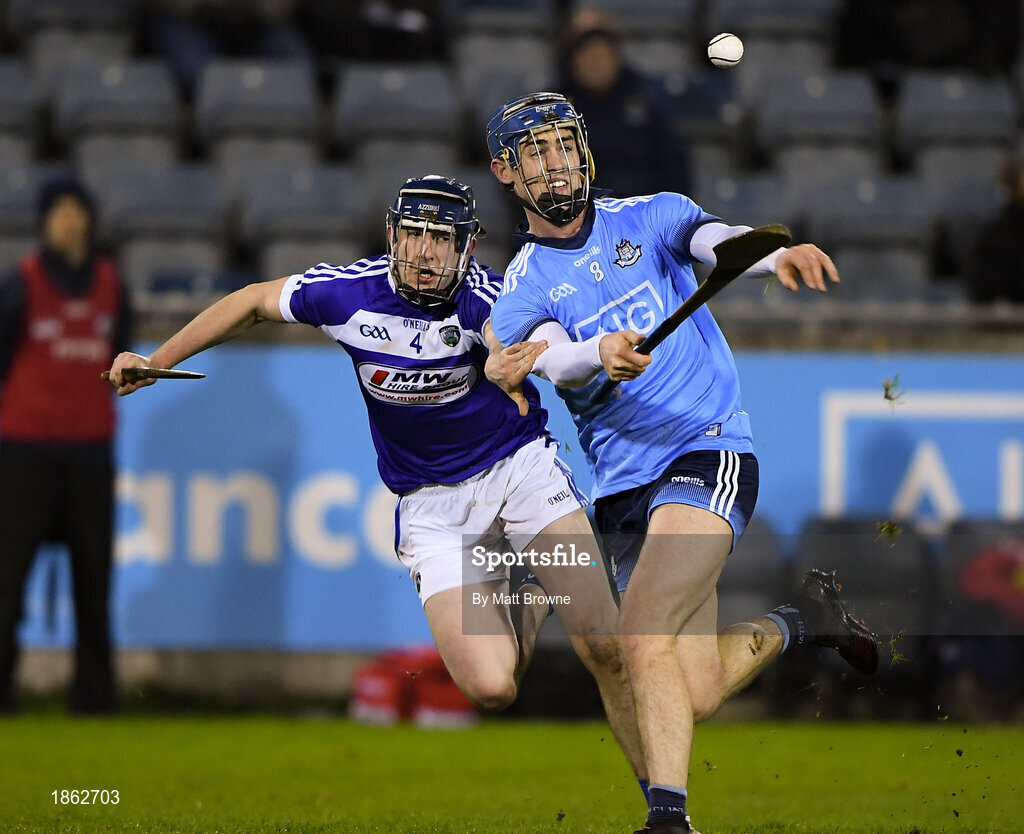 9 January 2020; Riain McBride of Dublin in action against Donncha Hartnett of Laois during the 2020 Walsh Cup Round 2 match between Dublin and Laois at Parnell Park in Dublin. Photo by Matt Browne/Sportsfile