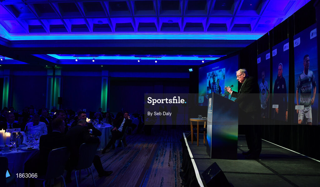 10 January 2020; Charlie Stuart speaking during the SSE Airtricity / SWAI Diamond Jubilee Personality of the Year Awards 2019 at the Clayton Hotel in Dublin. Photo by Seb Daly/Sportsfile
