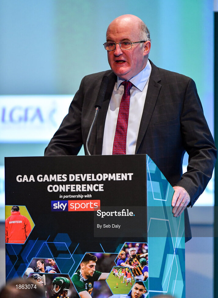 11 January 2020; Uachtarán Chumann Lúthchleas Gael John Horan speaking at the GAA Games Development Conference, in partnership with Sky Sports, which took place in Croke Park on Friday and Saturday. A record attendance of over 800 delegates were present to see over 30 speakers from the world of Gaelic games, sport and education. Photo by Seb Daly/Sportsfile