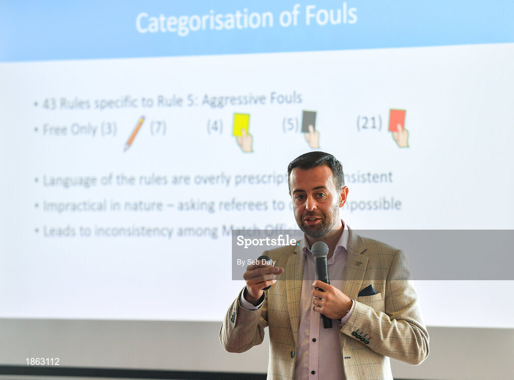 11 January 2020; David Gough, All Ireland Senior Football Final Referee 2019, speaking at the GAA Games Development Conference, in partnership with Sky Sports, which took place in Croke Park on Friday and Saturday. A record attendance of over 800 delegates were present to see over 30 speakers from the world of Gaelic games, sport and education. Photo by Seb Daly/Sportsfile