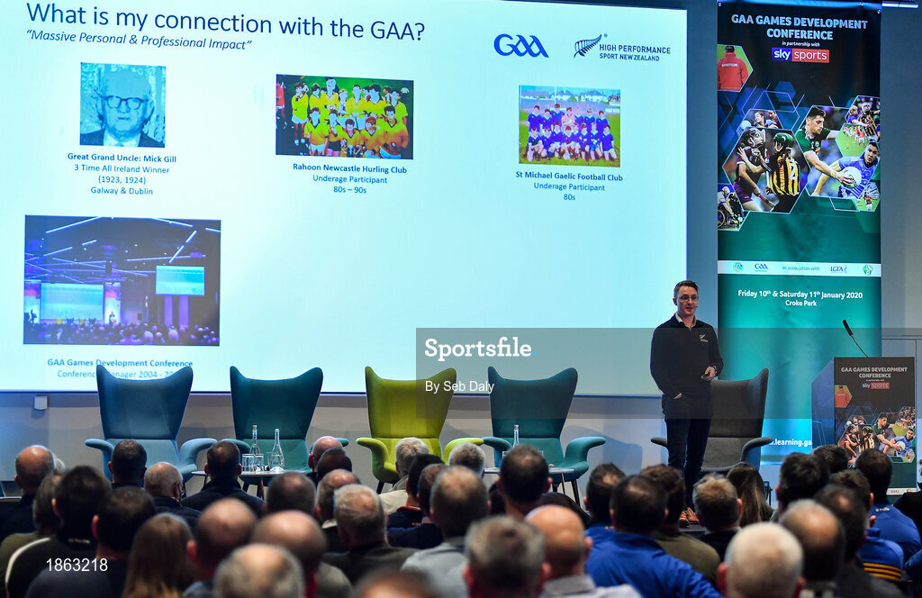 11 January 2020; Dr Darragh Sheridan, High Performance Coaching Manager, High Performance Sport New Zealand, speaking at the GAA Games Development Conference, in partnership with Sky Sports, which took place in Croke Park on Friday and Saturday. A record attendance of over 800 delegates were present to see over 30 speakers from the world of Gaelic games, sport and education. Photo by Seb Daly/Sportsfile