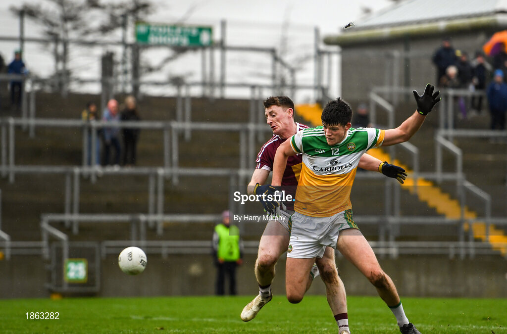11 January 2020; Jason Dempsey of Offaly in action against Anthony McGivney of Westmeath during the O'Byrne Cup Semi-Final match between Offaly and Westmeath at Bord na Móna O'Connor Park in Tullamore, Offaly. Photo by Harry Murphy/Sportsfile