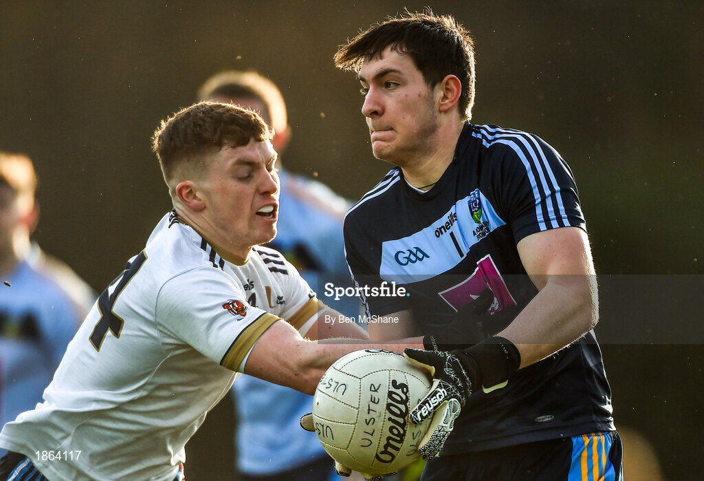 12 January 2020; Gary O'Rourke of UCD in action against Liam Quinn of UU Jordanstown during the Sigerson Cup Round 1 between UCD and UU Jordanstown at UCD Billings Park in Belfield, Dublin. Photo by Ben McShane/Sportsfile
