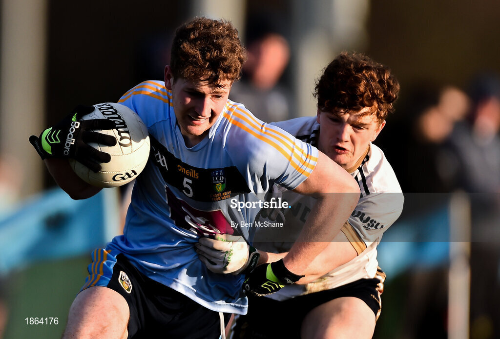 12 January 2020; Liam Flatman of UCD in action against Dailaigh Jones of UU Jordanstown during the Sigerson Cup Round 1 between UCD and UU Jordanstown at UCD Billings Park in Belfield, Dublin. Photo by Ben McShane/Sportsfile