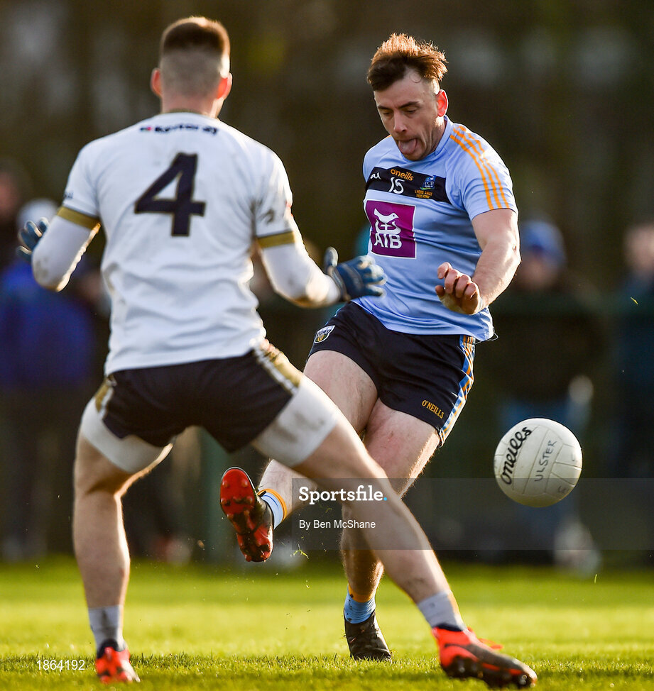 12 January 2020; Gary Walsh of UCD has a shot on goal during the Sigerson Cup Round 1 between UCD and UU Jordanstown at UCD Billings Park in Belfield, Dublin. Photo by Ben McShane/Sportsfile