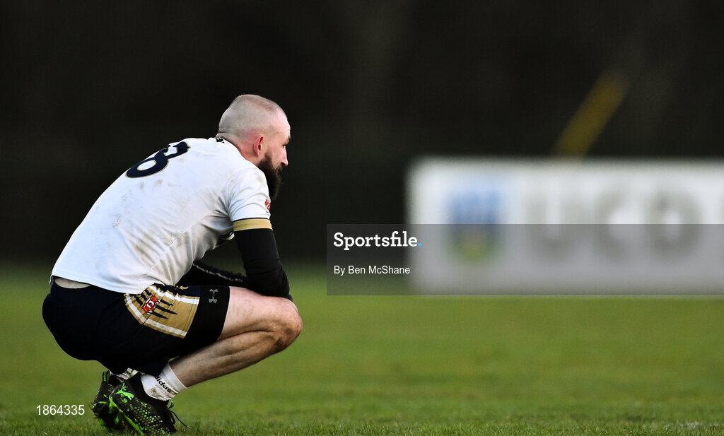 12 January 2020; A dejected Terence O'Brien of UU Jordanstown following the Sigerson Cup Round 1 between UCD and UU Jordanstown at UCD Billings Park in Belfield, Dublin. Photo by Ben McShane/Sportsfile