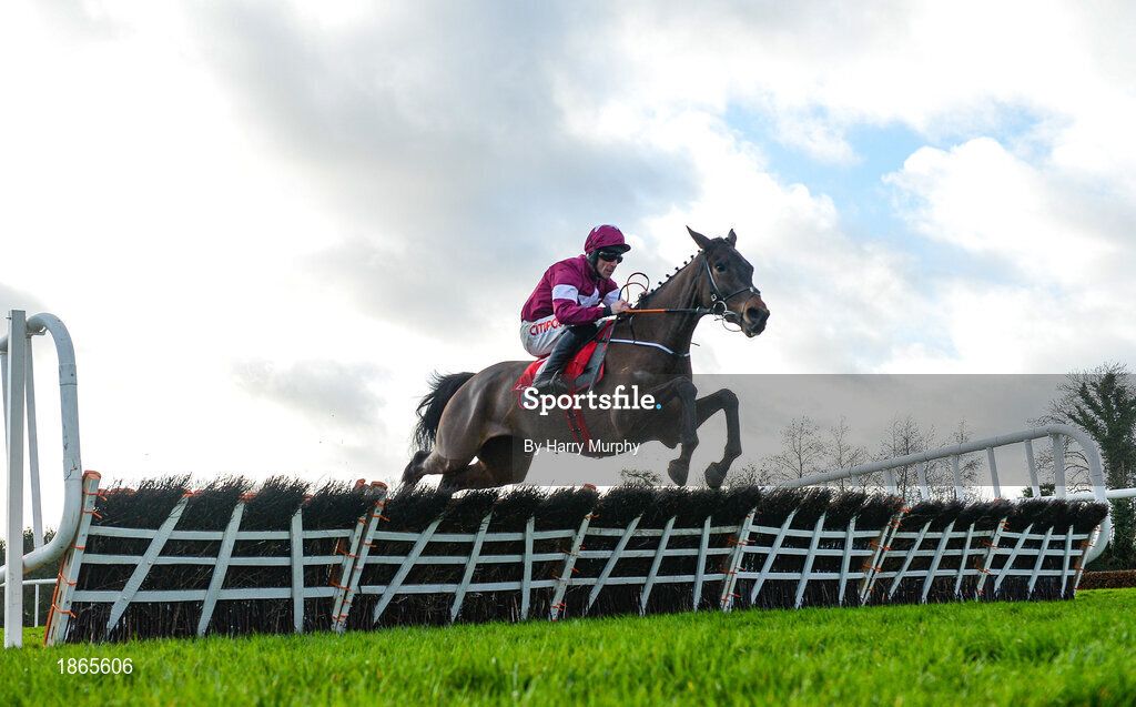 15 January 2020; Column Of Fire, with Davy Russell up, jumps the last, on their way to winning the Ladbrokes Football 'Acca-Boosty' Maiden Hurdle at Punchestown Racecourse in Kildare. Photo by Harry Murphy/Sportsfile