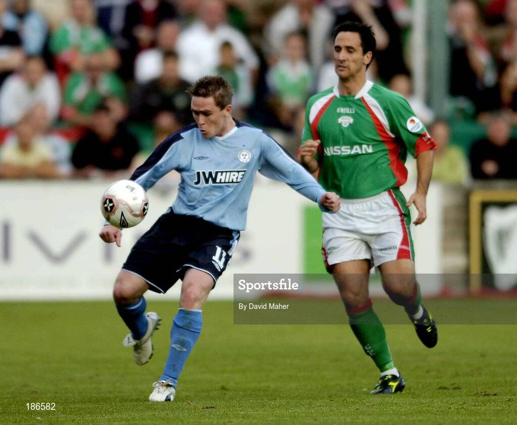 15 August 2005; Richie Baker, Shelbourne, in action against Neale Fenn, Cork City. eircom League, Premier Division, Cork City v Shelbourne, Turners Cross, Cork. Picture credit; David Maher / SPORTSFILE