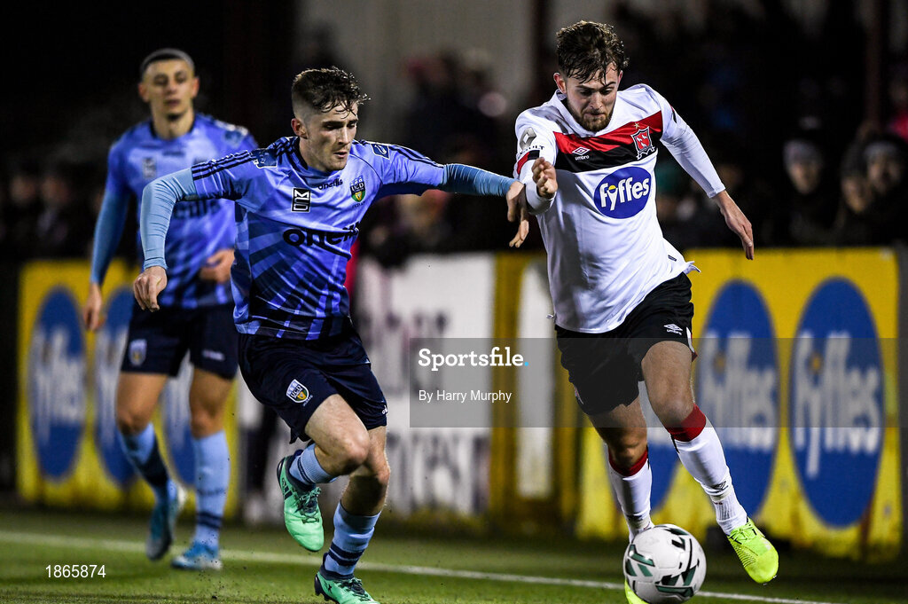 17 January 2020; Will Patching of Dundalk in action against Evan Farrell of UCD during the Pre-Season Friendly match between Dundalk and UCD at Oriel Park in Dundalk, Co. Louth. Photo by Harry Murphy/Sportsfile