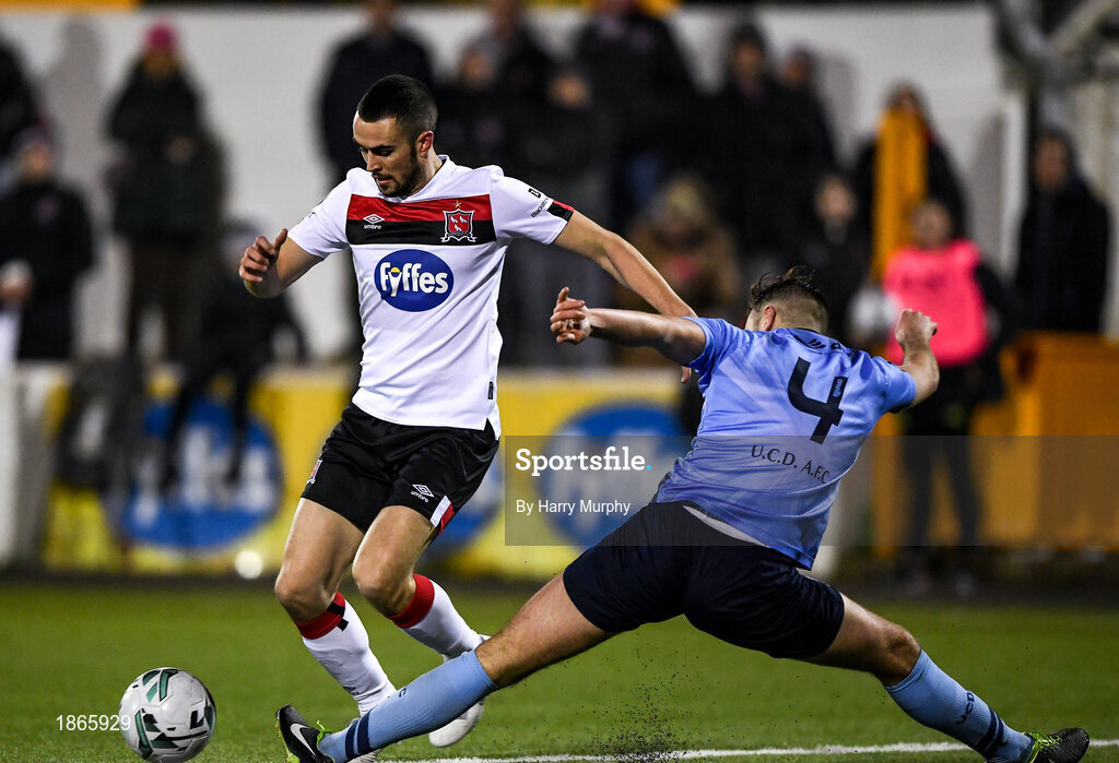 17 January 2020; Michael Duffy of Dundalk in action against Conor McKeown of UCD during the Pre-Season Friendly match between Dundalk and UCD at Oriel Park in Dundalk, Co. Louth. Photo by Harry Murphy/Sportsfile