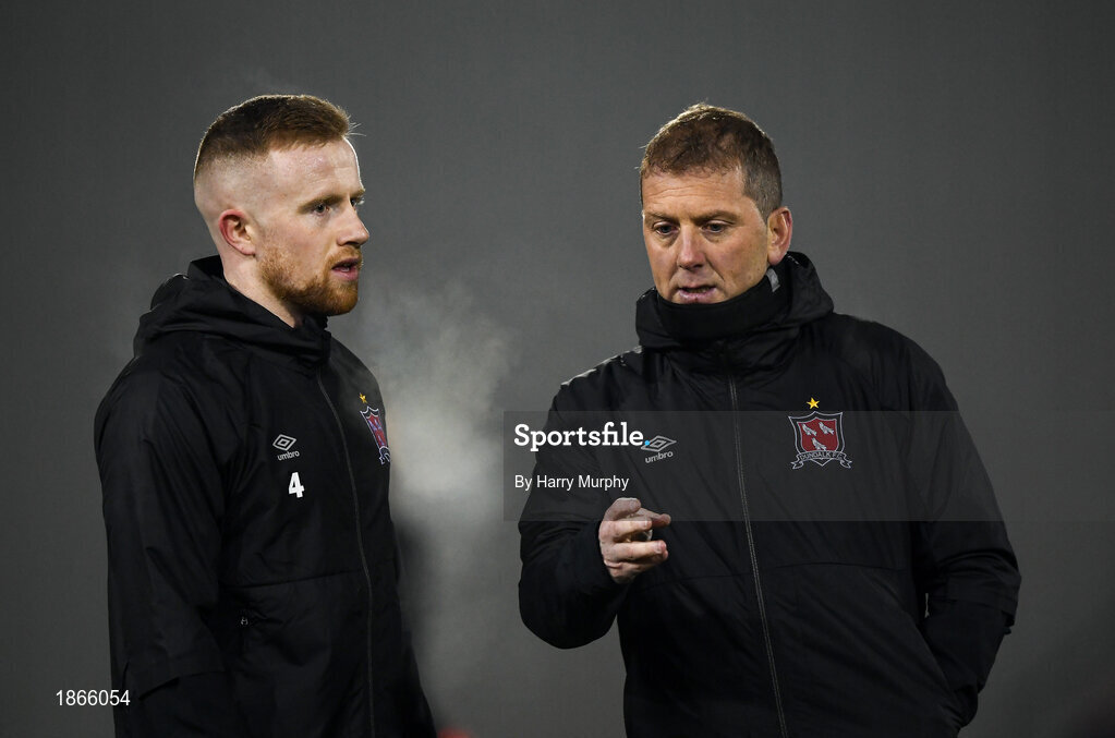 17 January 2020; Dundalk head coach Vinny Perth speaks with Seán Hoare of Dundalk prior to the Pre-Season Friendly match between Dundalk and UCD at Oriel Park in Dundalk, Co. Louth. Photo by Harry Murphy/Sportsfile