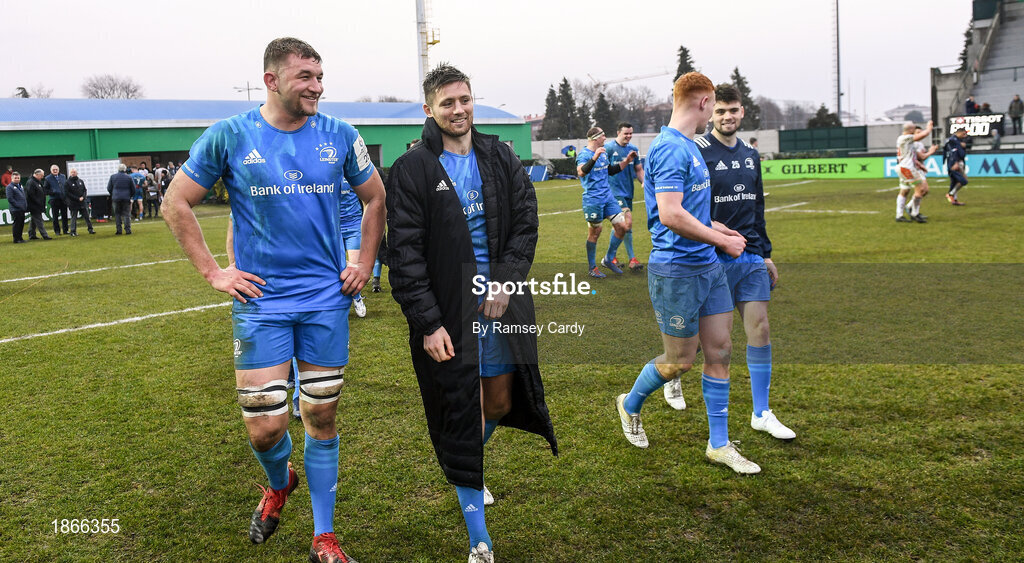 18 January 2020; Ross Molony, left, and Ross Byrne of Leinster following the Heineken Champions Cup Pool 1 Round 6 match between Benetton and Leinster at the Stadio Comunale di Monigo in Treviso, Italy. Photo by Ramsey Cardy/Sportsfile
