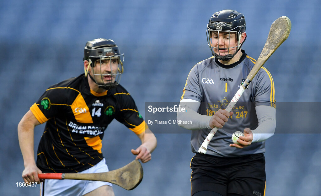 18 January 2020; Ross Walsh of Russell Rovers in action against Kieran Mooney of Conahy Shamrocks during the AIB GAA Hurling All-Ireland Junior Club Championship Final between Russell Rovers and Conahy Shamrocks at Croke Park in Dublin. Photo by Piaras Ó Mídheach/Sportsfile