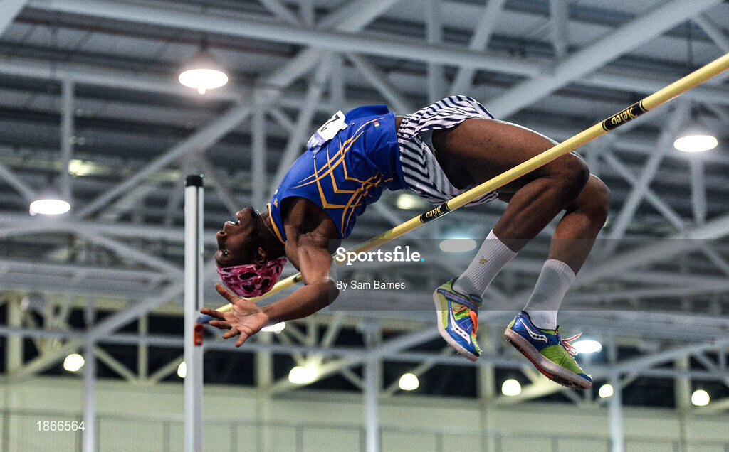 18 January 2020; Nelvin Appiah of Longford A.C., Co. Longford, competing in the High Jump in the Junior Men's combined events during the Irish Life Health Indoor Combined Events All Ages at Athlone International Arena, AIT in Athlone, Co. Westmeath. Photo by Sam Barnes/Sportsfile