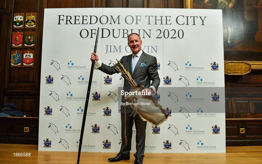 18 January 2020; Former Dublin GAA football team manager Jim Gavin at the Conferring of the Honorary Freedom of Dublin City on Jim Gavin ceremony in the Round Room at the Mansion House, in Dawson St, Dublin. Photo by Brendan Moran/Sportsfile