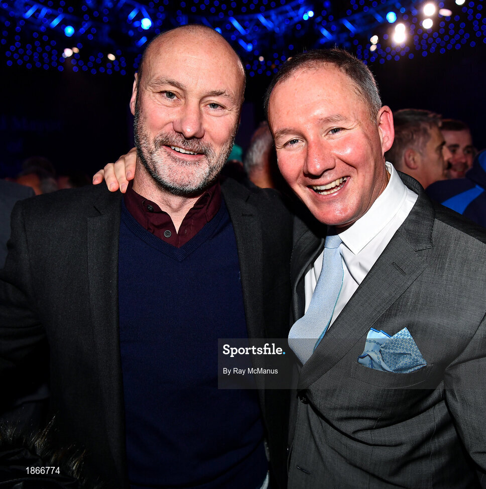 18 January 2020; Former Dublin GAA football team manager Jim Gavin with former Dublin star Paul Curran at the Conferring of the Honorary Freedom of Dublin City on Jim Gavin ceremony in the Round Room at the Mansion House, in Dawson St, Dublin. Photo by Ray McManus/Sportsfile