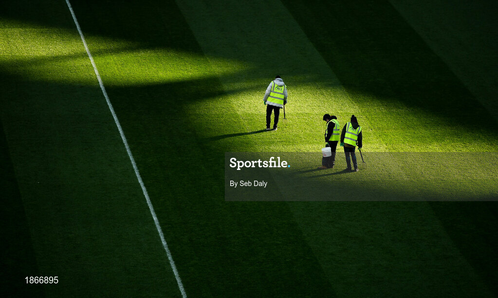 19 January 2020; Groundstaff tend to the pitch prior to the AIB GAA Football All-Ireland Senior Club Championship Final between Corofin and Kilcoo at Croke Park in Dublin. Photo by Seb Daly/Sportsfile