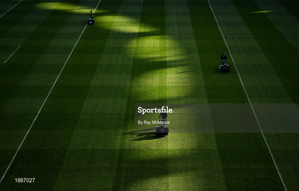19 January 2020; Croke Park groundstaff cut the grass in advance of the AIB GAA Football All-Ireland Senior Club Championship Final between Corofin and Kilcoo at Croke Park in Dublin. Photo by Ray McManus/Sportsfile